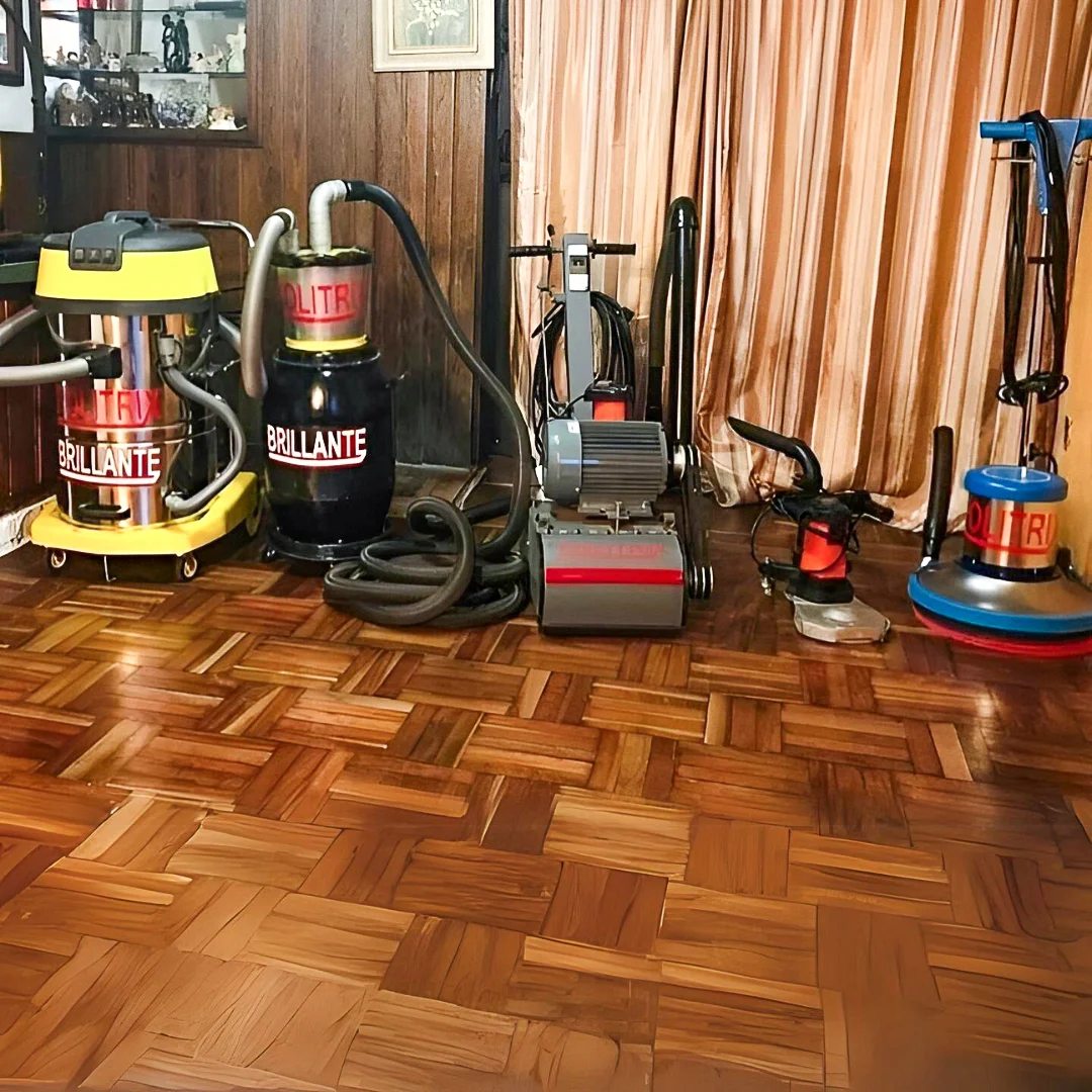 El equipamiento que usamos nos permite diferenciarnos del resto de pulidores de pisos de madera, dado que nuestro sistema es cero polvo usan las mejores tecnologías para que no tengas que irte de tu casa mientras trabajamos.